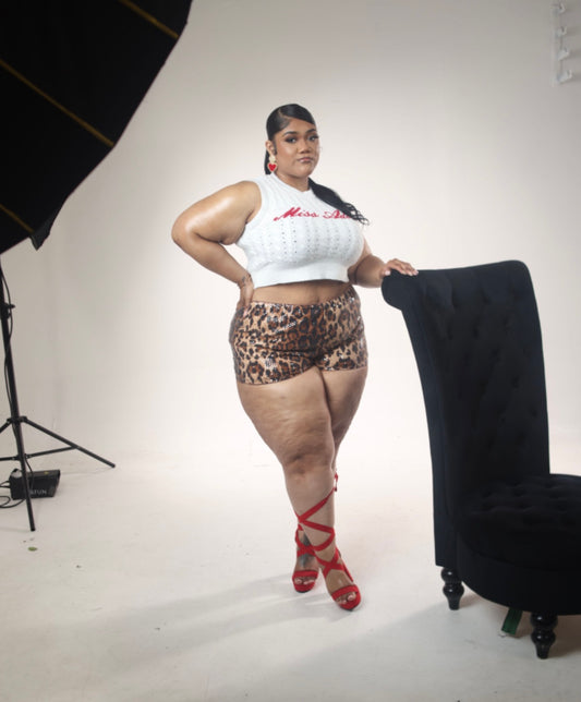 Adore me look! Shirt, Cheetah shorts and heels (Items are sold separately)